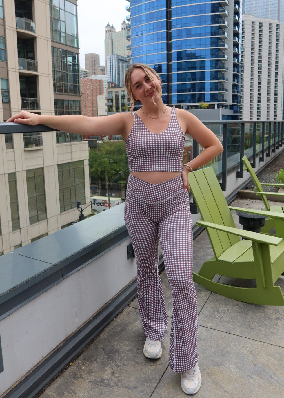 Pair this top with the Brown Gingham Flare Leggings to complete the set!